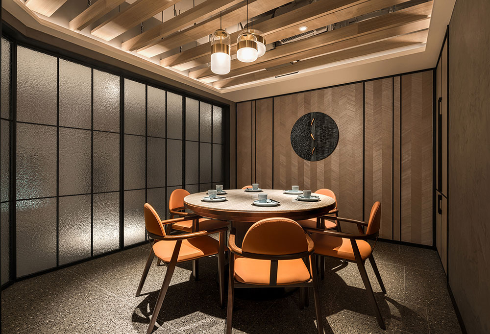 20人双拼包间的设计,独立与交流间收放自如,满足小型聚餐的多功能需求。